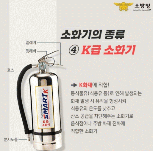 ÁÖ¹æ¿ë ¼ÒȱâÀÎ K±Þ ¼Òȱâ´Â ±â¸§ Ç¥¸é¿¡ À¯¸·À» Çü¼ºÇØ ¿Âµµ¸¦ ³·Ãß°í »ê¼Ò °ø±ÞÀ» Â÷´ÜÇØ Àç¹ßȸ¦ ¸·´Â ¿ªÇÒÀ» ÇÑ´Ù. ÀÌ´Â ¹ßÈÁ¡ÀÌ ³·Àº ½Ä¿ëÀ¯ ÈÀç¿¡ ´ëÇØ¼ ÀÏ¹Ý ¼Òȱ⿡ ºñÇØ ³ôÀº ÀûÀÀ¼ºÀ» º¸¿©Áֱ⿡ ¸ñÆ÷¼Ò¹æ¼´Â ±â¸§ÈÀç Áø¾Ð¿¡ Æ¯ÈµÈ K±Þ ¼ÒȱâÀÇ ºñÄ¡¸¦ ±ÇÀåÇϰí ÀÖ´Ù.