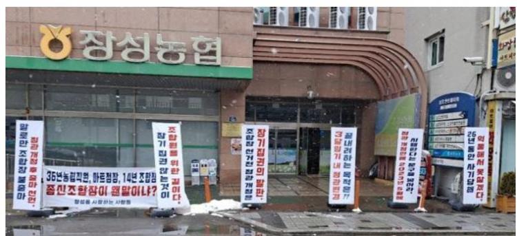 À强³óÇù Á¶ÇÕ¿ø ±è¸ð¾¾´Â ¡°ÇöÀç 2,863¸íÀÇ Á¶ÇÕ¿ø°ú 85¸íÀÇ ´ëÀÇ¿ø, ±×¸®°í 13¸íÀÇ ÀÌ»ç¿Í 2¸íÀÇ °¨»ç·Î ±¸¼ºµÇ¾î ÀÖ´Ù. ´ëÀÇ¿ø°ú Á¶ÇÕ¿øµé ´Ù¼ö°¡ ¹ÚÁ¶ÇÕÀåÀÇ ¿¬ÀÓÀ» ¹Ý´ëÇϰí, ´ë´Ù¼ö ´ëÀÇ¿øµé¸¶Àú ±Ø·ÄÇÏ°Ô °ÅºÎ°¨À» Ç¥¸í, Á¤°ü°³Á¤ÀÌ ¸Å¿ì ¾î·Á¿îµ¥µµ ºÒ±¸ÇÏ°í ³óÇùÁ÷¿øµé±îÁö µ¿¿øÇØ Á¤°ü º¯°æ¿îµ¿À» ÀÏ»ï°í ÀÖ´Â ÇàÀ§´Â ¸¶¶¥È÷ Áöź¹Þ¾Æ¾ß ÇÑ´Ù¡±¸ç ¡°36³â ³óÇùÁ÷¿ø 14³â Á¶ÇÕÀåÀ̸é ÃæºÐÇÏ´Ù. ÀÌ ¸¶Àúµµ ³Ê¹« ¿À·¡ ÇÑ °Í¡±À̶ó°í °·ÂÈ÷ ¼ºÅäÇß´Ù.