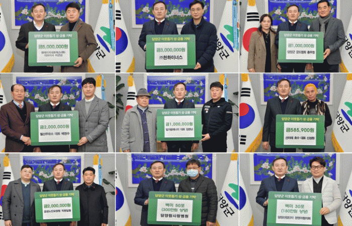 ´ã¾ç±º¿¡ µû¸£¸é ¿£¿¡ÀÌÄ¡³×Æ®¿÷½º(ÁÖ) À̱ٽŠ´ëÇ¥À̻簡 500¸¸¿øÀ» ±âŹÇßÀ¸¸ç, (ÁÖ)õÇÏÀ̳ʽº 300¸¸¿ø, ±Ý¼º³ëÀοä¾ç¿ø Á÷¿ø Àϵ¿ 200¸¸¿ø, ´ã¾ç±º±ÃµµÇùȸ Ãѹ«Á¤ 100¸¸¿ø, ¿ù»êÁÖÀ¯¼Ò ¹èÁ¤¼ö ´ëÇ¥ 200¸¸¿ø, ºû°¡¶÷ ¿¡³ÊÁö ±èÂù¶õ ´ëÇ¥ 100¸¸¿ø, »ê¾Æ·¡È£¼ö ½Å¼º¿ø ´ëÇ¥°¡ 58¸¸¿øÀ» ±âŹÇß´Ù.