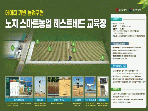 ³ëÁö Å×½ºÆ®º£µå¿¡¼´Â ¡ãÁöÁßÁ¡Àû µî ÀÚµ¿ °ü¼ö Àåºñ·Î ³ëµ¿·Â¡¤³ó¾÷¿ë¼ö Àý°¨ ¡ã¿ÜºÎ ±â»ó´ë, ÀÛ¹°»ýÀ° °èÃø ½Ã½ºÅÛ, Åä¾çȯ°æ ¼¾¼¿Í ÀΰøÁö´É(AI)±â¼ú Ȱ¿ëÇÑ »ýÀ°»óȲ ¸ð´ÏÅ͸µ ¹× »ý»ê·® ¿¹Ãø ¡ã¹«Àο¹Âû µðÁöÅÐÆ®·¦ ÅëÇÑ º´ÇØÃæ µ¥ÀÌÅͺ£À̽º ±¸Ãà ¹× ¸ð´ÏÅ͸µÀ¸·Î º´ÇØÃæ Àû±â ¹æÁ¦ µî ½º¸¶Æ®³ó¾÷ ±â¼úÀ» ÇöÀå ½ÇÁõÇÑ´Ù.