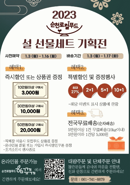 ÇÑÆí, ¼øÃµ·ÎÄÃǪµå´Â ¸íÀý ¼±¹°¼¼Æ®¸¦ 5¸¸ ¿ø ÀÌ»ó ±¸¸ÅÇϸé Åùèºñ ¹«·á¿Í ±Ý¾×´ëº° »óǰ±Ç ÁõÁ¤, »óǰº° ´ý ÁõÁ¤ µî ´Ù¾çÇÑ ÇýÅÃÀÌ ÁÖ¾îÁø´Ù. »çÀü ¿¹¾àÀº 16ÀϱîÁö·Î ¼øÃµ·ÎÄÃǪµå ¿Â¶óÀθô ¡®ÇÔ²²°¡°Ô¡¯¿Í ÀüÈ, Á÷¸ÅÀå ÇöÀå Á¢¼ö¸¦ ÅëÇØ °¡´ÉÇÏ´Ù.