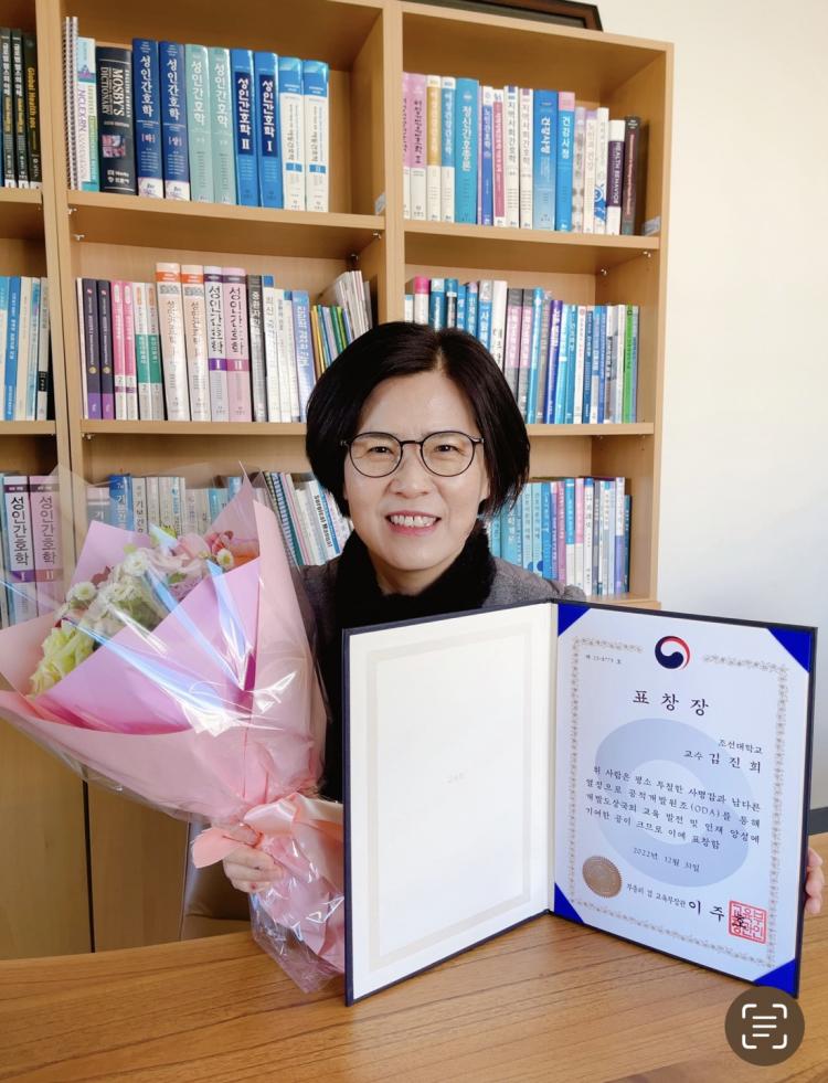 Á¶¼±´ëÇб³ ±¹Á¦Çù·Â¼±µµ´ëÇÐ »ç¾÷´ÜÀº ÃÖ±Ù ±èÁøÈñ ±³¼ö°¡ ±¹Á¦Çù·Â¼±µµ´ëÇÐÀ°¼º¡¤Áö¿ø»ç¾÷À» ÅëÇÑ ±³À° °øÀû°³¹ß¿øÁ¶ »ç¾÷¿¡¼ÀÇ °ø·Î¸¦ ÀÎÁ¤¹Þ¾Æ ±³À°ºÎÀå°ü ǥâÀåÀ» ¼ö¿©¹Þ¾Ò´Ù°í ¹àÇû´Ù.