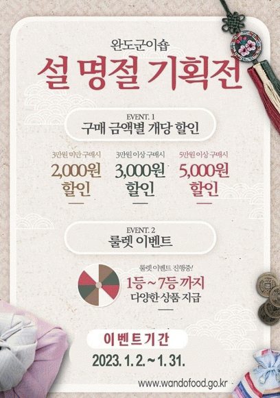 ¿Ïµµ±º ´ëÇ¥ ¿Â¶óÀÎ ¼îÇθôÀÎ ¡®¿Ïµµ±ºÀ̼󡯿¡¼ ÁøÇà ÁßÀÎ ¼³ ¸íÀý À̺¥Æ®´Â ±¸¸Å °³¼ö ´ç ÃÖ´ë 5õ ¿øÀ» ÇÒÀÎÇϰí, 2¸¸ ¿ø ÀÌ»ó ¹«·á ¹è¼ÛÀ» ½Ç½ÃÇϰí ÀÖ´Ù.