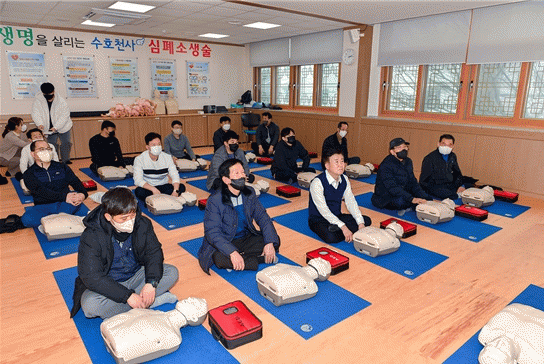 ±³À°½Ã°£Àº 80¿©ºÐÀ¸·Î ÀÀ±Þ»óȲ ¹ß»ý ½Ã Çൿ¿ä·É, °¡½¿¾Ð¹Ú ½ÉÆó¼Ò»ý¼ú(CPR), ÀÚµ¿½ÉÀåÃæ°Ý±â »ç¿ë ¹æ¹ý µî¿¡ ´ëÇØ ±³À°ÇÑ´Ù.