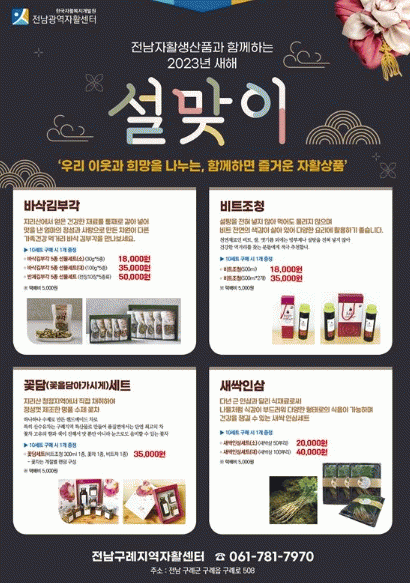 ±¸·ÊÁö¿ªÀÚȰ¼¾ÅÍ´Â ¼³ ¸íÀýÀ» ¸Â¾Æ ÁýÁßÀûÀ¸·Î ÆÇ¸Å¿¡ ³ª¼¶À¸·Î½á ¡®ÀÚȰ»óǰ À¯Å롯À» Ȱ¼ºÈ ½ÃŰ´Â °è±â°¡ µÇ±â¸¦ ¹Ù¶ó°í ÀÖÀ¸¸ç, ÀÚȰ»óǰ ÆÇ¸ÅÁ¡Àº ¡ã±¸·ÊÁö¿ªÀÚȰ¼¾ÅÍ=±¸·ÊÀ¾ ±¸·Ê·Î 508(781-7970) ¡ã±¸·ÊÃàÇùÇϳª·Î¸¶Æ®(±¸·ÊÀ¾ ºÀµ¿±æ 9) ¿Í ÀÎÅͳÝÁÖ¹® ¡ã±¸·ÊÁö¿ªÀÚȰ¼¾ÅÍ È¨ÆäÀÌÁö¡ã³ì»ö³ª´®ÀåÅ͡㱸·Ê±º ·ÎÄø¶ÄÏ µî 5°÷ÀÌ´Ù.