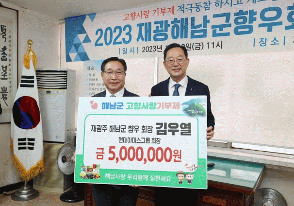 Áö³ 13ÀÏ À籤 ÇØ³²±º Çâ¿ìÀÎ ±è¿ì¿ Çö´ë¾Æ¹Ì½º(ÁÖ) ´ëÇ¥À̻簡 ÇØ³²±º¿¡ °íÇâ»ç¶û±âºÎ±Ý 500¸¸¿øÀ» ±âŹÇß´Ù. ÇØ³²±º È»ê¸é Ãâ½ÅÀÎ ±è¿ì¿ ȸÀåÀº ±¤ÁÖ¿¡¼ ¼Ò¹æ½Ã¼³°ü¸®¿Í Àü±â¾ÈÀü°ü¸®´ëÇà, °æºñ¡¤Ã»¼Ò¿ë¿ª µî °øµ¿ÁÖÅðü¸®¾÷üÀÎ Çö´ë¾Æ¹Ì½º(ÁÖ)¸¦ ¿î¿µÇϰí ÀÖ´Ù.