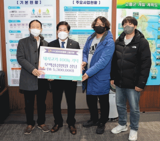 13ÀÏ (»ç)´ëÇÑÇѵ·Çùȸ °íÈïÁöºÎ(ÁöºÎÀå ÀÌÀç´ö)¿¡¼ µÅÁö°í±â 500kg(5¹é3½Ê¸¸¿ø »ó´ç)¿Í ¿À¸¶Çصµ¸®(´ëÇ¥ ¾ËÆù¼Ò À¯½ºÅ×)¿¡¼ ÀÇ·á±â±â, À̺Ò, Àü±â´ã¿ä, ÇÜ ¼¼Æ® µî ÃÑ 230¼¼Æ® 1õ5¹é¸¸¿ø »ó´çÀÇ ±âʹ°Ç°À» ±º¿¡ Àü´ÞÇß´Ù.