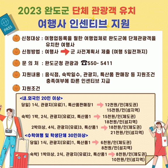 Áö¿ø ±âÁØÀº ³»¿Ü±¹ÀÎ ´Üü °ü±¤°´Àº 20¸í ÀÌ»óÀ¸·Î ´çÀÏ ±âÁØ Ã¼µµ±ÇÀº 1Àδç 12,000¿ø, ¼¶ Áö¿ªÀº 1Àδç 15,000¿øÀ» Áö¿øÇÑ´Ù.