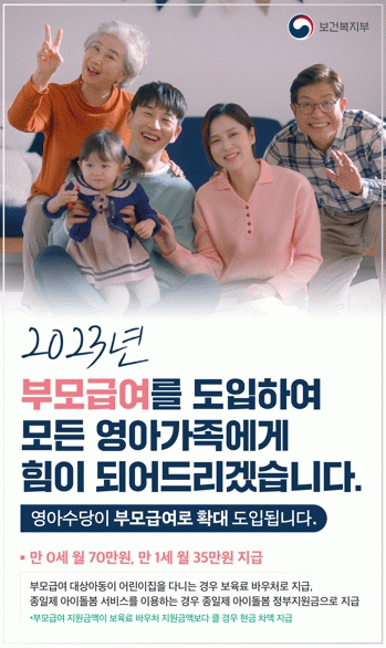 ºÎ¸ð±Þ¿©´Â 2023³âµµ Á¤ºÎ ½Å±Ô»ç¾÷À¸·Î 2022³â 1¿ù 1ÀÏ ÀÌÈÄ Ãâ»ýÇÑ ¸¸ 2¼¼ ¹Ì¸¸ ¾Æµ¿(0~23°³¿ù)À» ¾çÀ°ÇÏ´Â ºÎ¸ð¿¡°Ô ¿ù 35~70¸¸¿øÀ» Áö±ÞÇÑ´Ù.