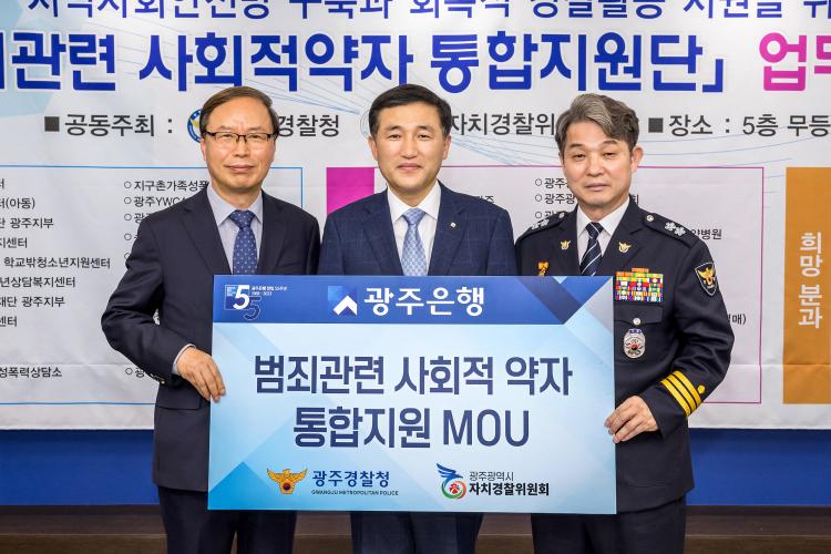 À̹ø Çù¾à½Ä¿¡´Â °íº´ÀÏ ±¤ÁÖÀºÇàÀå°ú ÀÓ¿ëȯ ±¤ÁÖ°æÂûûÀå, ±èźÀ ±¤ÁÖÀÚÄ¡°æÂûÀ§¿øÀå µîÀÌ Âü¼®ÇßÀ¸¸ç, Çù¾àÀ» ÅëÇØ Áö¿ªÀÇ ¹üÁË ÇÇÇØÀÚ º¸È£ ¹× Áö¿øÀ» È®´ëÇϰí, ¸ÂÃãÇü Áö¿øÀ» ÅëÇÑ ³ª´®À» ½ÇõÇϰíÀÚ ¼¼ ±â°üÀÌ ±ä¹ÐÈ÷ Çù·ÂÇÒ °ÍÀ» ¾à¼ÓÇß´Ù.