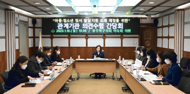 °£´ãȸ¿¡´Â ¡ã¿ÀÈ°æ ±¤ÁÖ ¾Æµ¿±×·ìȨ ÁöȸÀå ¡ãȲ¼öÁÖ ºÏ±¸ Çб³¹Û û¼Ò³âÁö¿ø¼¾ÅÍÀå ¡ãÃÖÇý¼÷ ºÏ±¸Áö¿ª¾Æµ¿¼¾ÅÍ È¸Àå ¡ã±èÀ±´ö ºÏ±¸ ºÏ±¸Áö¿ª¾Æµ¿¼¾ÅÍ ºÎȸÀå ¡ãÀÓ¼º¾ß Àå¾Ö ±×·ìȨ ´ÃǪ¸¥ ½Ã¼³Àå µîÀÌ Âü¼®ÇÏ¿©, ¾Æµ¿?û¼Ò³â±â ¾ÆÀ̵éÀÇ ½É¸®Àû, Á¤¼Àû ¾ÈÁ¤ÀÇ Á߿伺°ú Á¤¼¹ß´ÞÀ» À§ÇÑ ÇàÁ¤Àû Áö¿øÀÇ Çʿ伺¿¡ °ø°¨ÇÏ°í ±×¿¡ ´ëÇÑ Áö¿ø ¹æ¾È µîÀÇ ´Ù¾çÇÑ ÀǰßÀ» Á¦½ÃÇßÀ¸¸ç, À̼÷Èñ ÀÇ¿øÀº °£´ãȸ ³»³» ÇØ´ç ÀǰßÀ» °æÃ»ÇÏ°í °ø°¨ÇÏ¸ç °ü·Ã ÀǰßÀ» Àû±Ø Á¶·Ê¾È¿¡ ¹Ý¿µÇÒ °ÍÀ» ¾à¼ÓÇß´Ù.