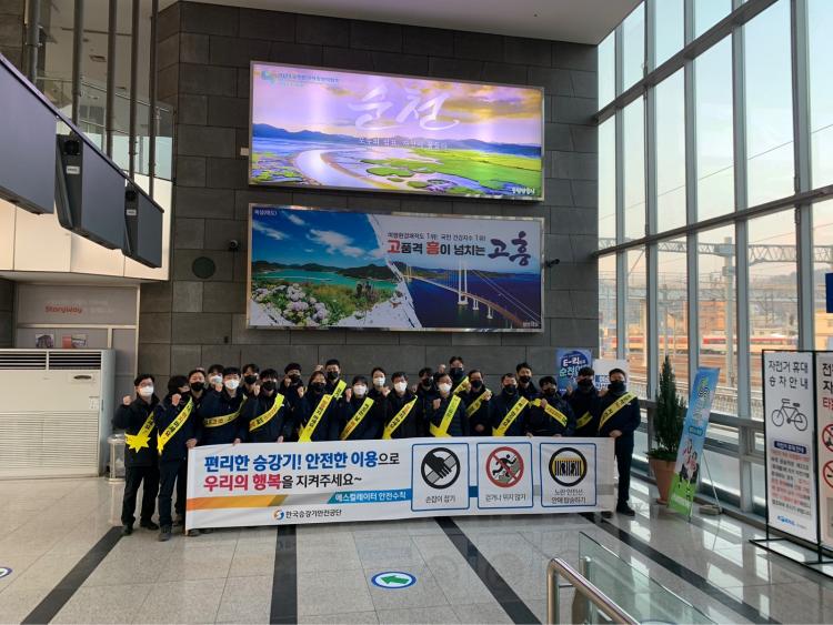 ÃÖ±Ù Àü±¹ÀûÀ¸·Î ¿¡½ºÄ÷¹ÀÌÅÍ ¿©°´ ¾ÈÀü»ç»ó»ç°í°¡ ¹ß»ýÇÔ¿¡ µû¶ó, Çѱ¹½Â°±â¾ÈÀü°ø´Ü°ú ÇÔ²² ¡®23.1.18.(¼ö) KTX ¼øÃµ ¿ª»ç À̿밴µéÀ» ´ë»óÀ¸·Î Çö¼ö¸·, ÇÇÄÏ, È«º¸¹° µîÀ» Ȱ¿ëÇÏ¿© °í°´ ¾ÈÀüÀÇ½Ä °íÃë, ½Â°±â ¾ÈÀü¼öÄ¢ Áؼö ¹× ¾ÈÀü¹®È Á¤Âø µîÀ» µµ¸ðÇÏ´Â Ä·ÆäÀΠȰµ¿À» ½ÃÇàÇÏ¿´´Ù.