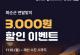 À̹ø À̺¥Æ®´Â ¸Ô±úºñ ¾Û¿¡¼ 1¸¸ 5õ ¿ø ÀÌ»ó ÁÖ¹® ½Ã Áï½Ã »ç¿ëÇÒ ¼ö ÀÖ´Â 3,000¿ø ÇÒÀΡ¦ |